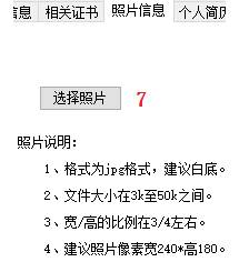 7、注意照片说明,超过50K的照片,系统拒绝导入,照片应为标准的小二寸工作照,底色为蓝色或者白色,要求必须清晰(否则打印证书会有问题)。