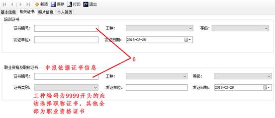 1)如依据的报名条件中(例如:中级工满四年+相应工种高级工培训),需要培训证书的,请在下图培训证书栏目中如实填写相关信息,对于证书号码不知的,请在证书编号位置录入规定的文字内容【已发文编号待查】。